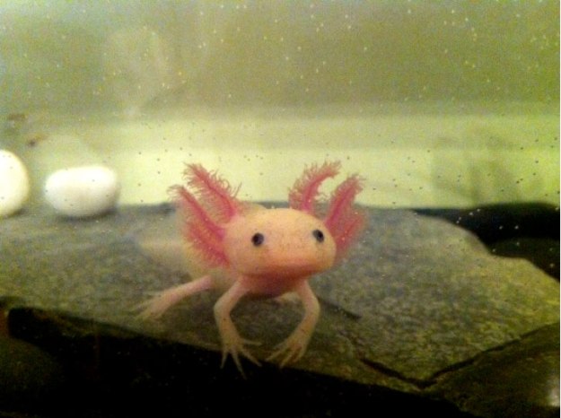 I recently moved to Falmouth, MA. With the new apartment came a new tank for the pet axolotl, Thing 1. Here he is hanging out, which is what he does most of the time. Isn’t he a cutie?