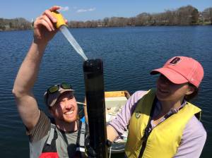 This spring the Brown University-Marine Biological Laboratory IGERT class set out to analyze aDNA in a sediment core from lovely Siders Pond, Falmouth, MA. This is a pond I have sampled multiple times during my time working at MBL and for the Semester of Environmental Science. It is a meromictic pond, somewhat brackish at the surface and quite salty in the hypolimnion (it receives Atlantic Ocean water during high tides and storms). The pond is in downtown Falmouth and is thought to have undergone significant changes during the course of Falmouth’s growth. The IGERT class wanted to test this using aDNA. The plan is to take a sediment core, generate an age model chronology for the sediment, and assess what types of organism turnover and diversity changes have occurred through time.