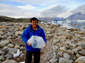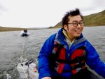 - Boyang poses next to one of his PhD lakes.