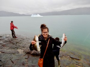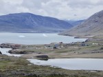 There was time in each village after completing our tasks and in the evenings when we could explore. We were blessed with magnificent scenery – icebergs rolling over in the fjord, flocks of lambs and ewes scattered around the hills, huge mountains hidden in the clouds, lakes perched in unexpected places, fields of blooming buttercups, tongues of the Greenland Ice Sheet. I became accustomed to seeing sheep everywhere we went.