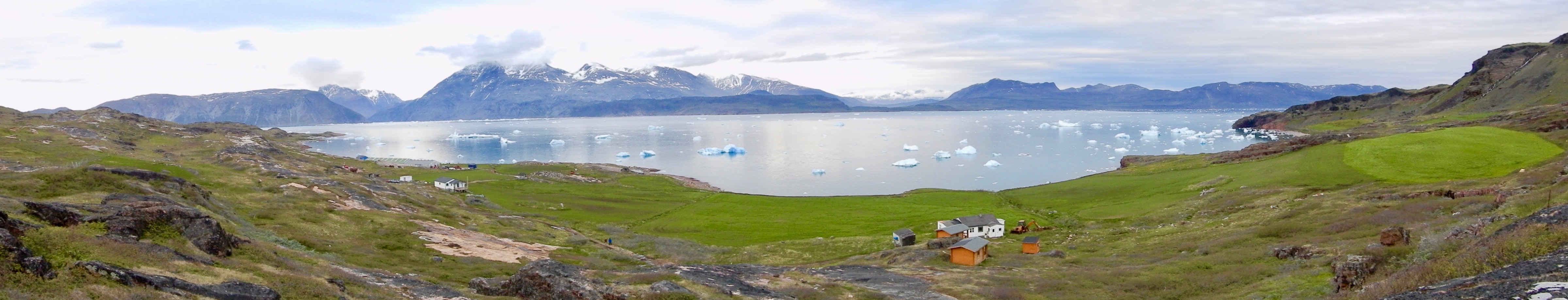 In Greenland, we arrive and depart from the town of Narsarsuaq. Our work was done in the nearby villages of Igaliku, Sillisit, and Qassiarsuk. Travel between the towns is via a combination of boat (weaving through a maze of icebergs in Tunulliarfik Fjord) and 4 wheel drive truck (bouncing over one lane dirt/rock roads along the coast). Travel to our field sites is largely by foot.