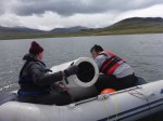 - Collecting lake sediments from a rubber raft. A classic pastime in geolimnology.