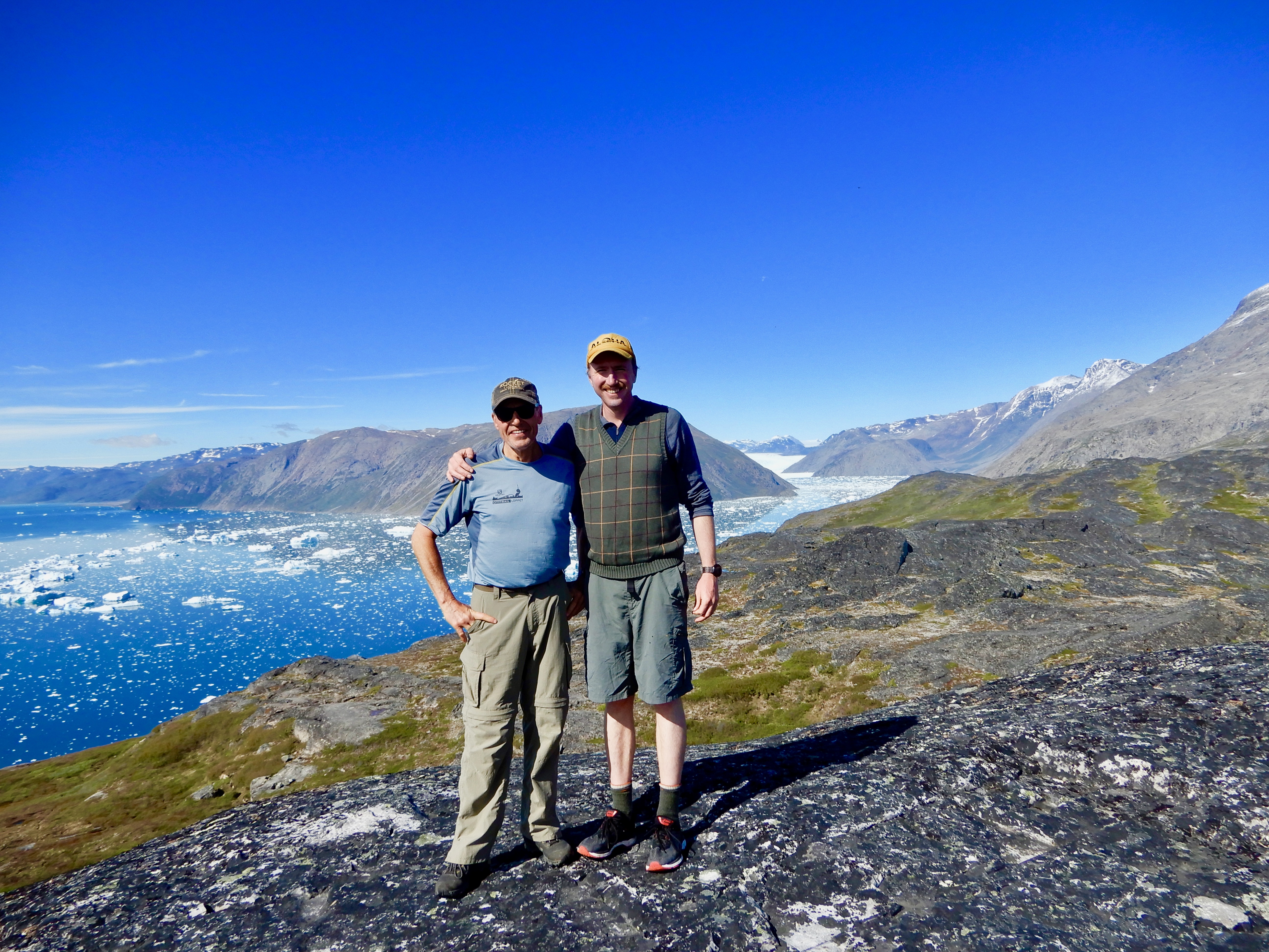 DSCN0415 ← Previous Next → Notice the arc of icebergs – these were stranded on a submarine glacial moraine. You can see the glacier in the upper right of the photo. Don’t be distracted by the figures in the middle.