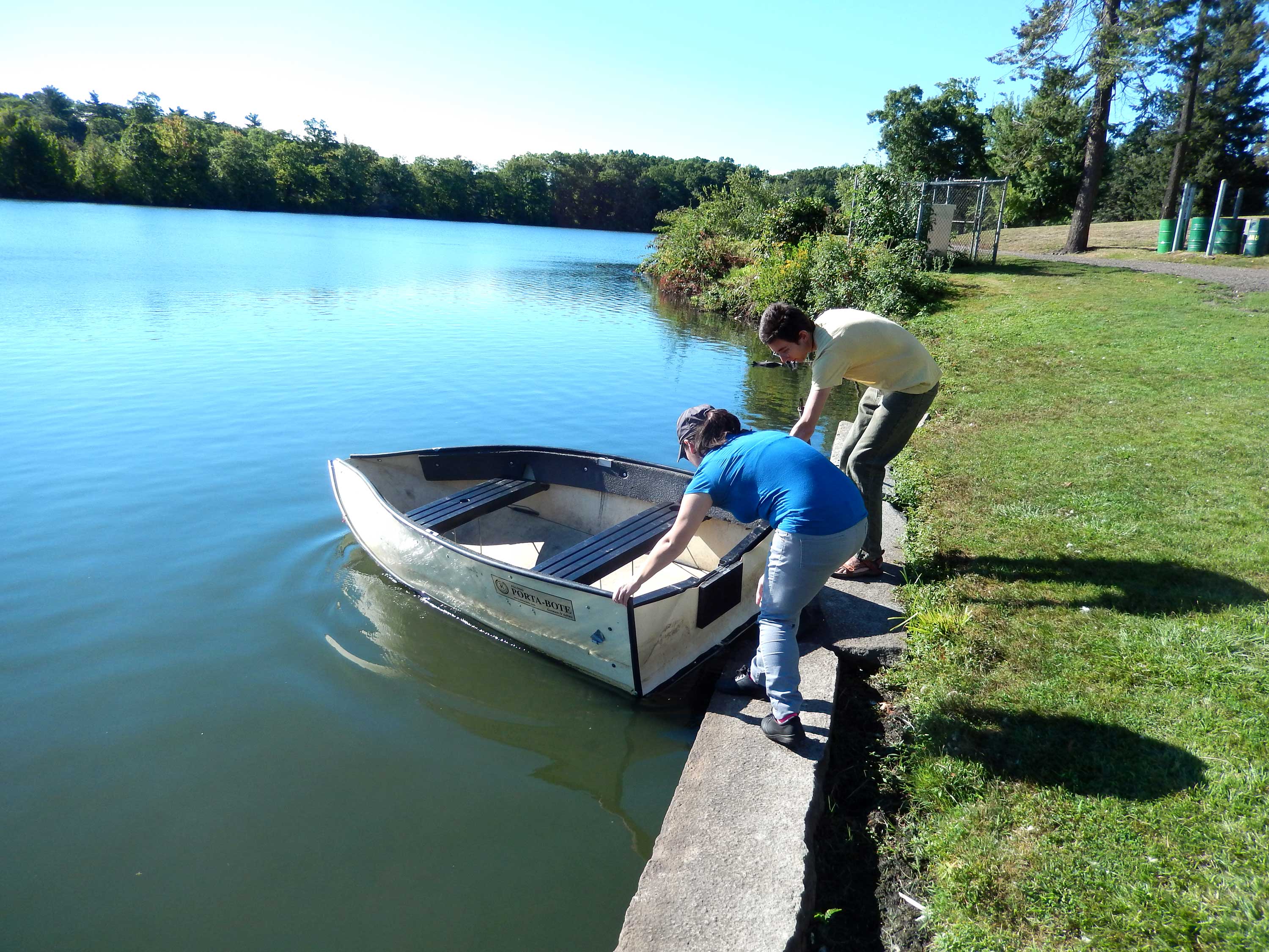 Meyrolin and Joe launch the boat on a beautiful morning.