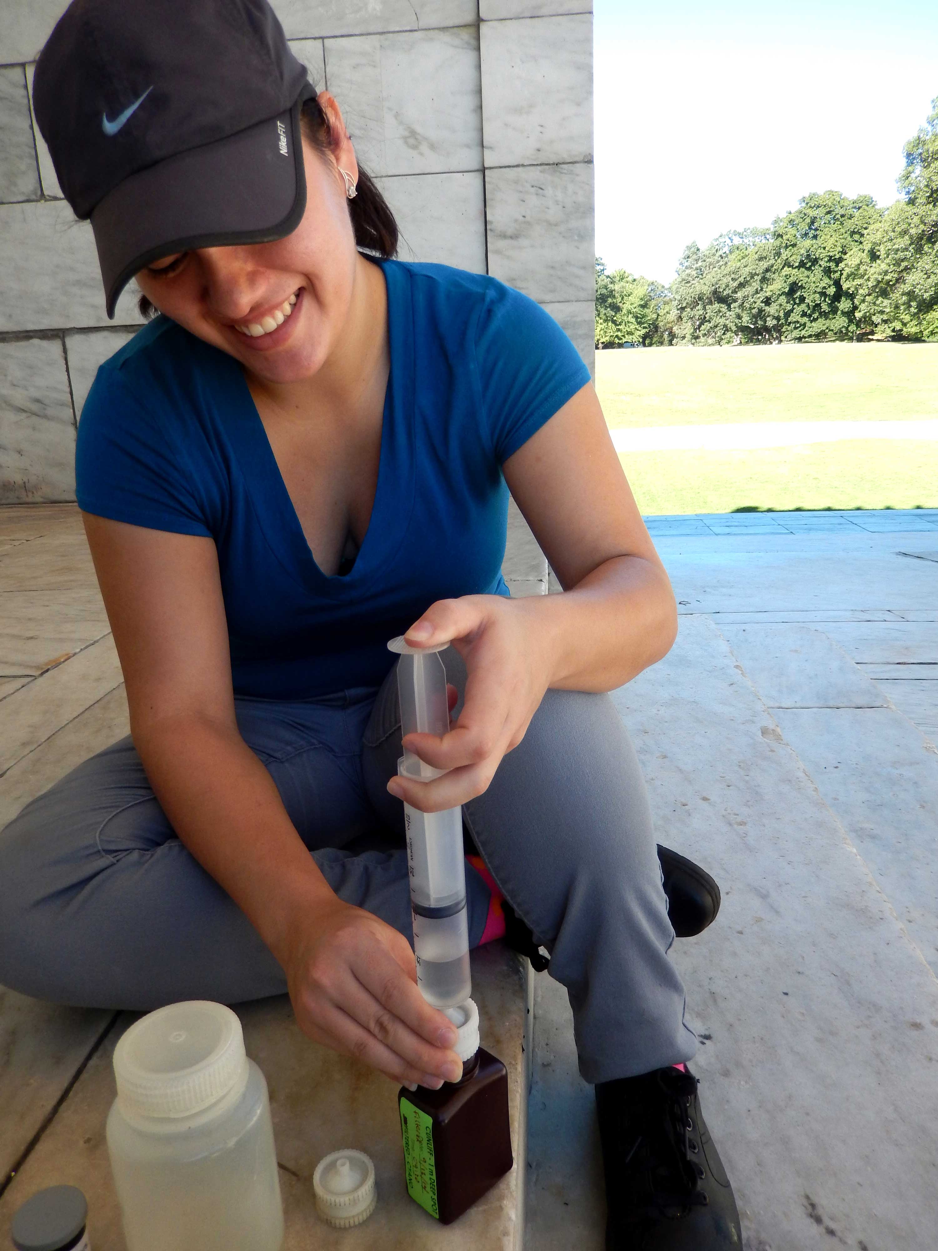 filter ← Previous Next → Meyrolin, an undergrad at Brown, filters water for chlorophyll and phytoplankton measurements.