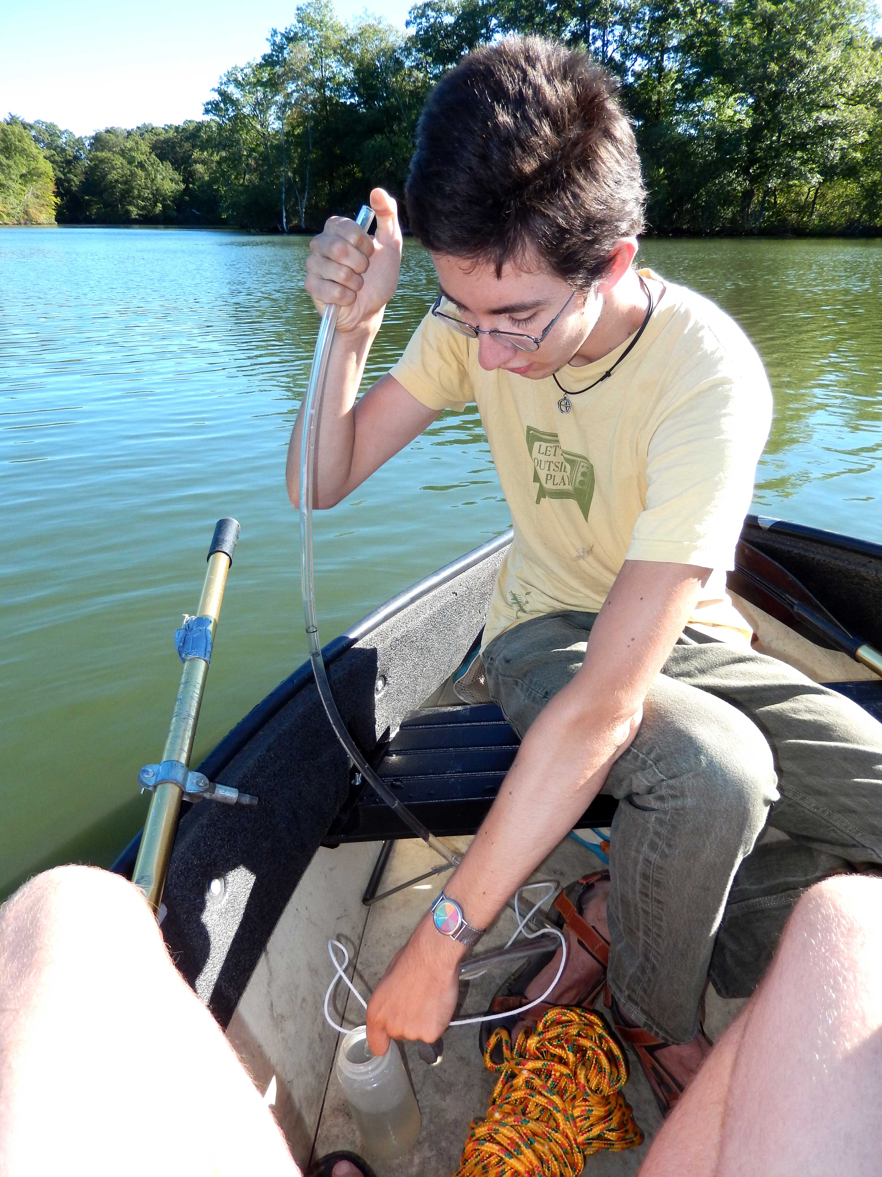tube2 ← Previous Next → Joe, a remote sensing technician, uses tubing to collect a phytoplankton sample to test for the presence of nuisence blue-green algae.